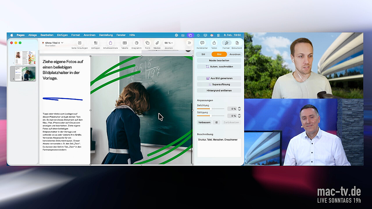 Letzte Woche hatten wir bereits gezeigt, was von Pages und Keynote übrig bleibt, wenn man kein Abo für das »Creator Studio« abschließt: Eine Menge! Dieses Mal kommen die Abo-Versionen an die Reihe. Bei Keynote ist vermutlich eine Funktion von besonderem Interesse, die per KI automatisch komplette Präsentation erzeugen kann, wenn man ihr die Stichworte dafür zum Fraß vorwirft. Die Ergebnisse sollte man allerdings gesehen haben, bevor man das Abo bucht. Für Keynote und Pages gleichermaßen ist die neue Mediathek hilfreich, in der man viele Fotos und Illustrationen laden. Man kann auch Bilder per KI erzeugen lassen. Die Ergebnisse sind tatsächlich brauchbar, wenn man etwas Glück hat. (Spielzeit: 47 Minuten.)